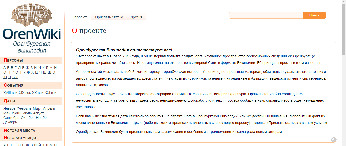 “Оренбургская энциклопедия" — это систематизированная база знаний по истории, культуре, географии, экономике и персоналиям Оренбургской области. Мы собираем интересную информацию со всего интернета и оцифровываем доступные нам архивы. Энциклопедия реализована на программной основе и принципах Википедии: информация предоставляется пользователям бесплатно, автором статей может стать любой желающий.